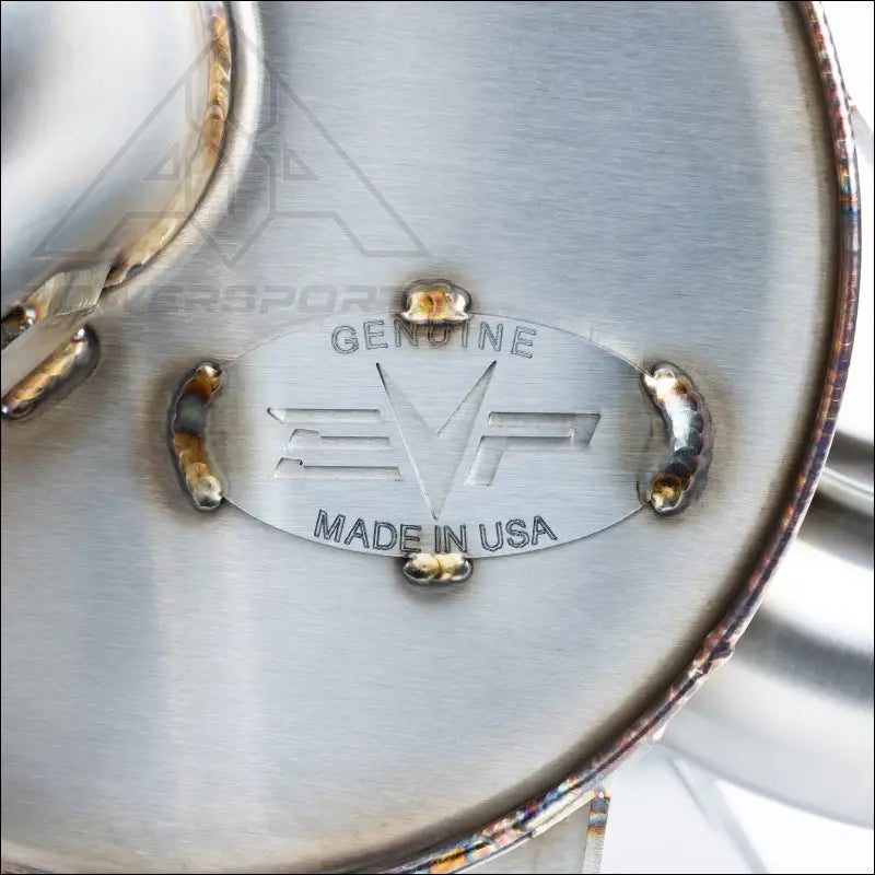 The muffler’s twin exit design can be finished off in three different tip options: Blue Flame Dual Wall Stainless Steel, Rolled Edge Stainless Steel, or Dual-Wall Stainless Steel. Additional styling features include a black powder-coated muffler end cap with laser-etched EVP logo set off by a riveted raw aluminum backing plate.