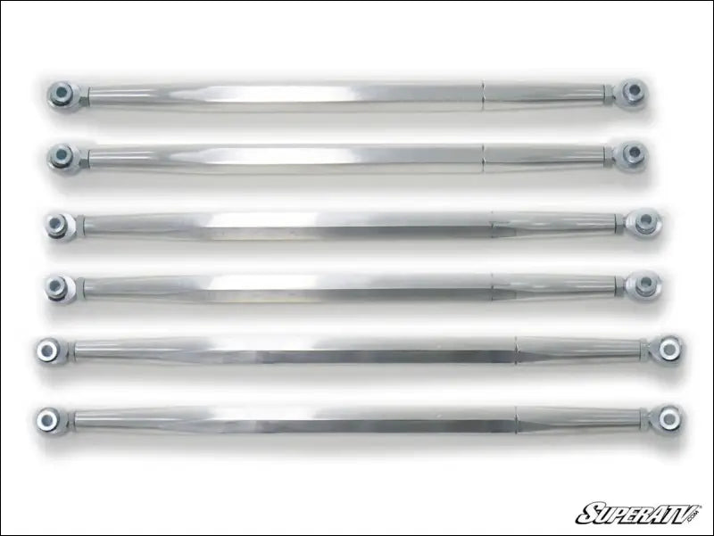 Get the style and strength to match your Can-Am Maverick X3 with SuperATV‰۪s Billet Aluminum Radius Arms. Your Can-Am X3 likes to play as hard as you do, and its rear radius arms are in serious need of beefing up. You want strength, that's why we make our radius rods with a 1-å_" solid 7075 billet aluminum bar‰ÛÓmuch stronger than the 1 inch steel on the stock machine. We didn‰۪t stop there‰ÛÓthe hexagonal design is a show-stopping head turner that also protects against heavy impacts. Whether you just need upgraded upper arms, lower arms, or all six, we've got you covered with this sick set of radius arms.