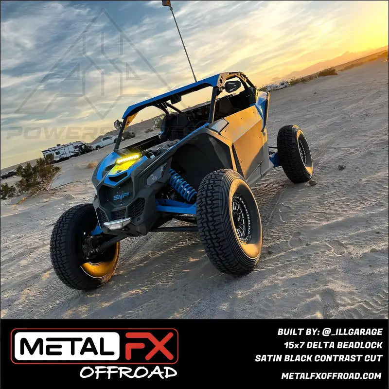 The Metal FX Offroad Delta UTV Wheel combines our technical expertise with uncompromised attention to detail creating the ultimate in style and performance. The design of the Delta includes a unique concave center and a 6061-T6 Billet Beadlock for enhanced strength and durability.