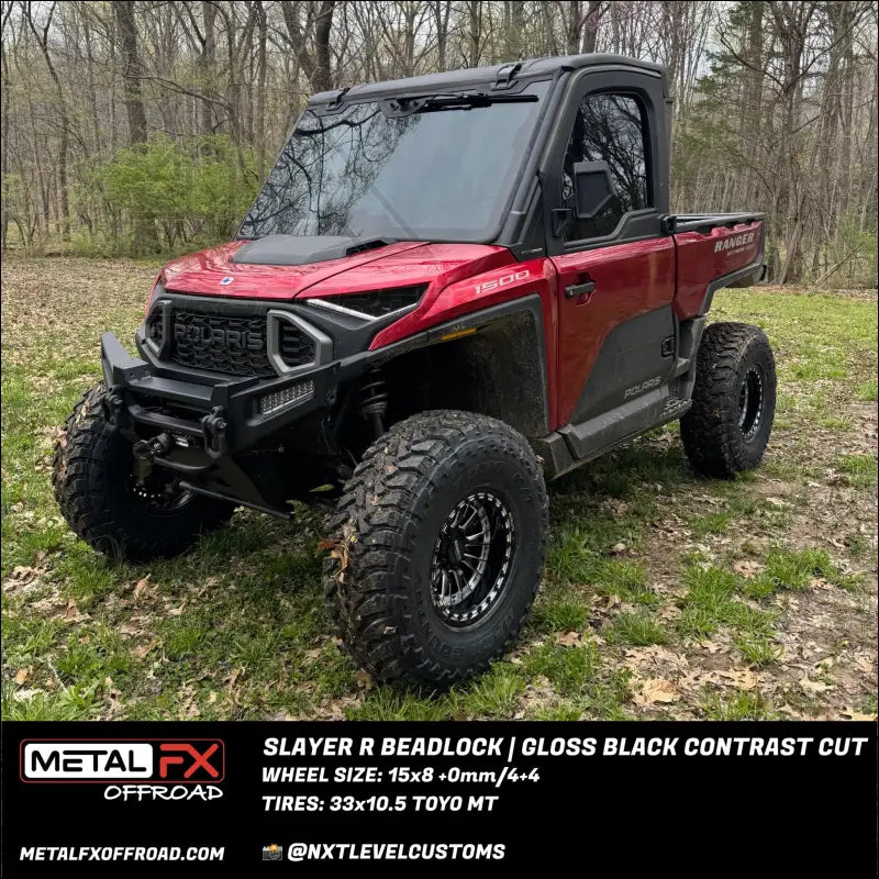 The Metal FX Offroad Slayer R UTV Wheel combines our technical expertise with uncompromised attention to detail creating the ultimate in style and performance. The design of the Slayer R includes a unique concave Center and a 6061- T6 Forged Aluminum Beadlock for enhanced strength and durability. Each model in the Metal FX Offroad R Series is designed specifically for Polaris 5-Lug & Segway Super Villain platforms.